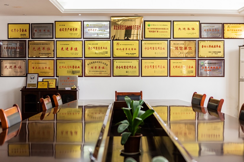 “明邦”商標(biāo)被認(rèn)定為“湖北省著名商標(biāo)”,同時被評定為“湖北名牌”產(chǎn)品,企業(yè)同時被評定為“湖北省重合同守信用企業(yè)”、“湖北省新型墻材產(chǎn)業(yè)化示范基地”和“荊門市循環(huán)經(jīng)濟示范企業(yè)”,公司通過了“綠色建材評價標(biāo)識證書”、“GB/T 45001-2020職業(yè)健康安全管理體系認(rèn)證證書”、“GB/T 19001-2016質(zhì)量管理體系認(rèn)證”、“GB/T 24001-2016環(huán)境管理體系認(rèn)證證書”。